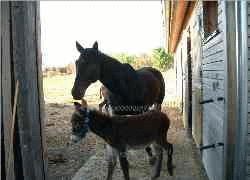 In Unserem Stall befinden sich Pferde und unsere Esel